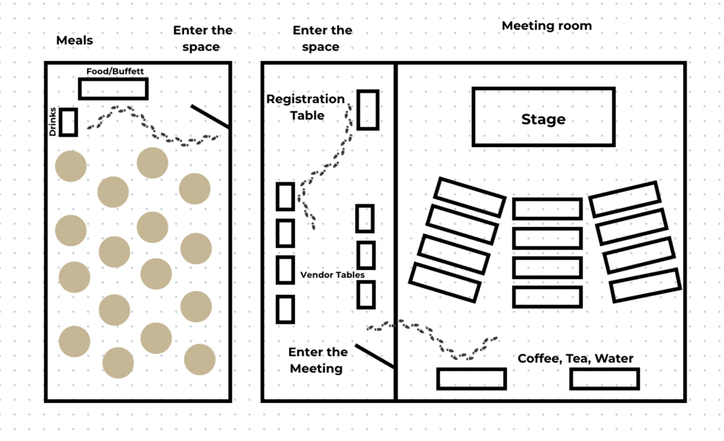 Pro tip: Observe how people move in the first hour of your event and adjust the spacing and signage in-real-time.